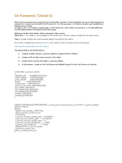 Read Online TUTORIAL ON OA FRAMEWORK Epub